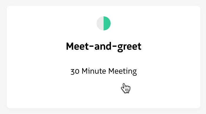To book an event, a visitor must select from the available Meeting Type cards on the Landing Page.