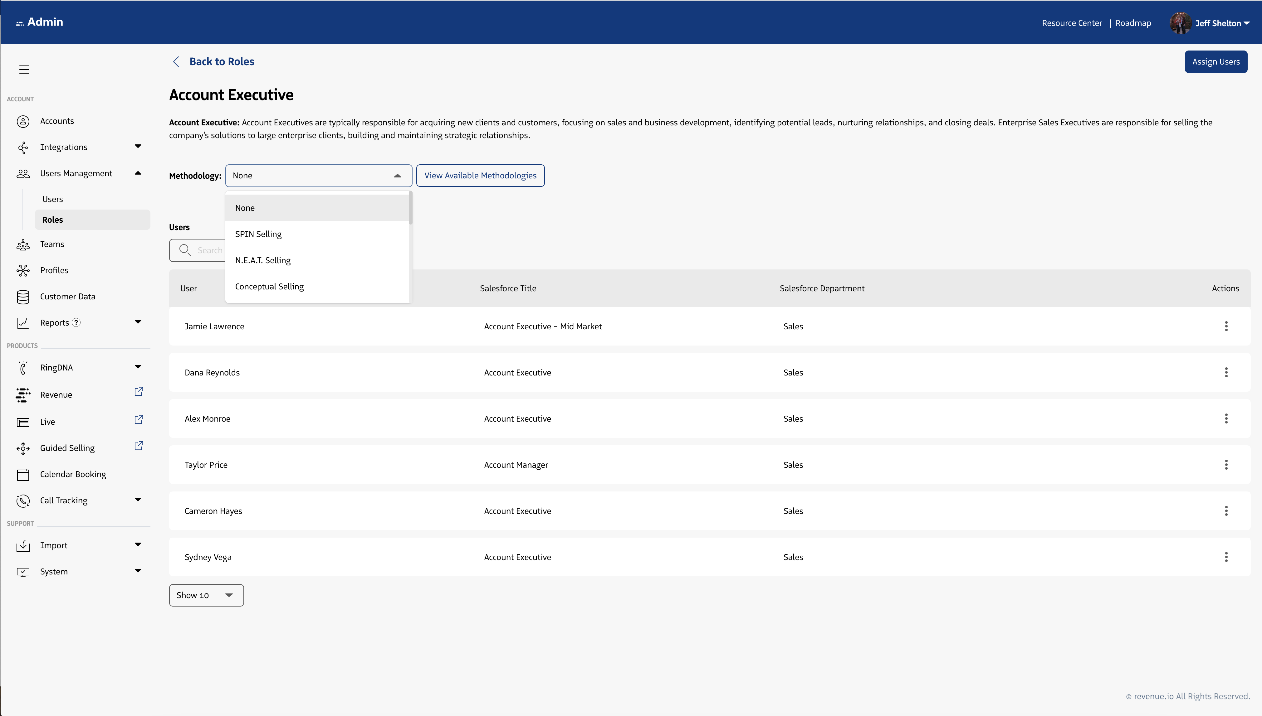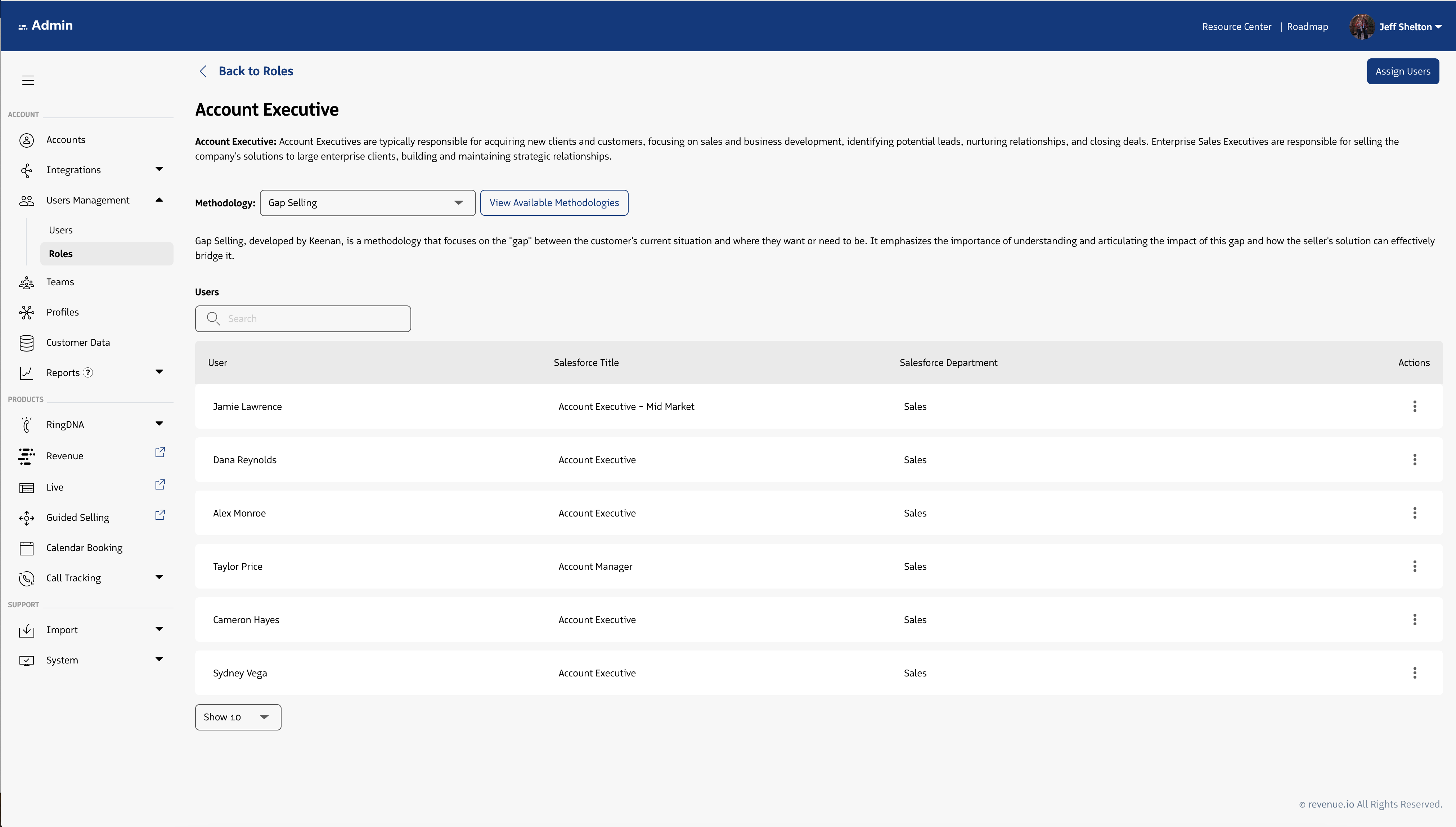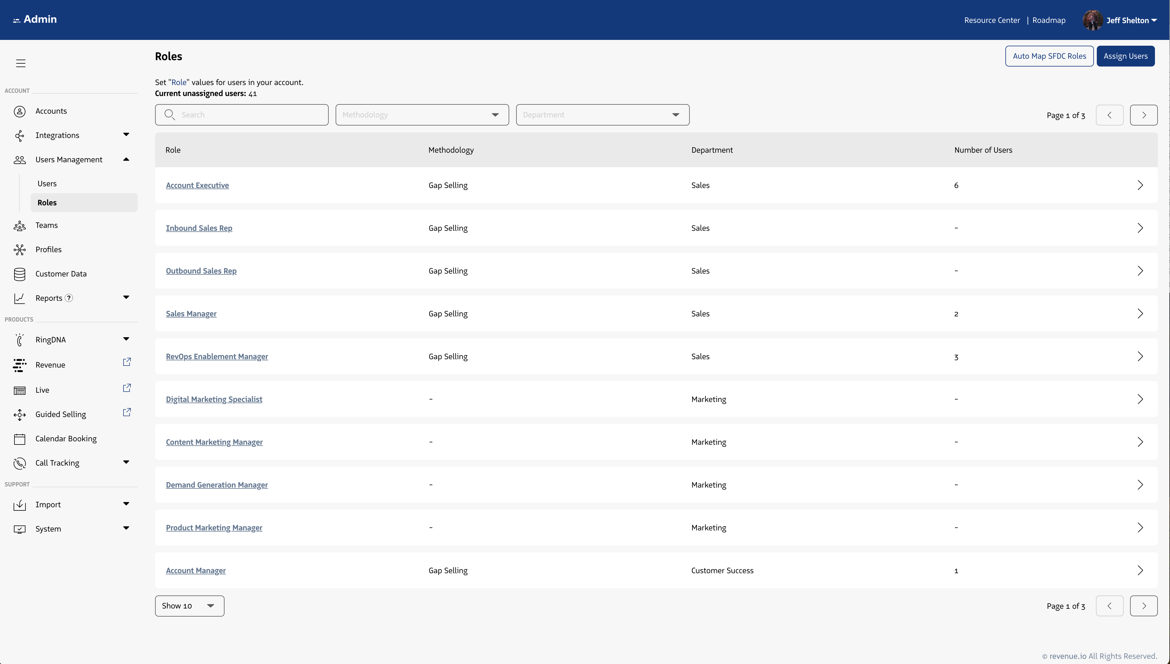 Roles within the Revenue platform, map a user on a 1:1 basis to the best representation of their job function. Roles are used to group users with like responsibilities and success criteria.