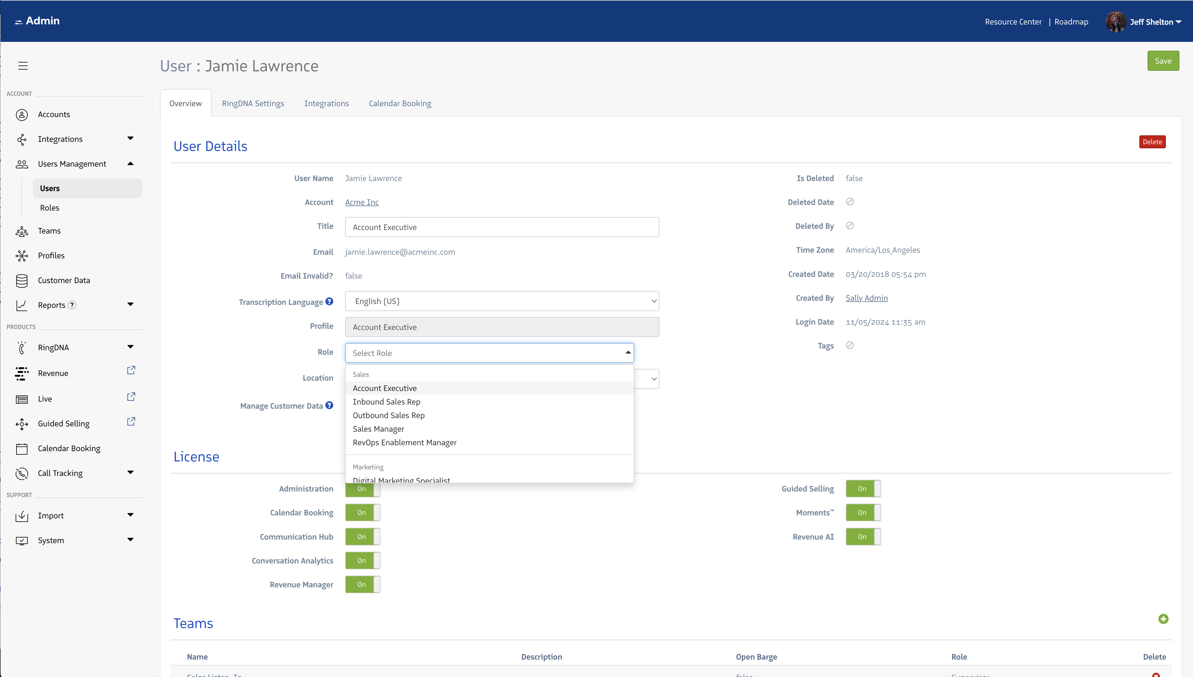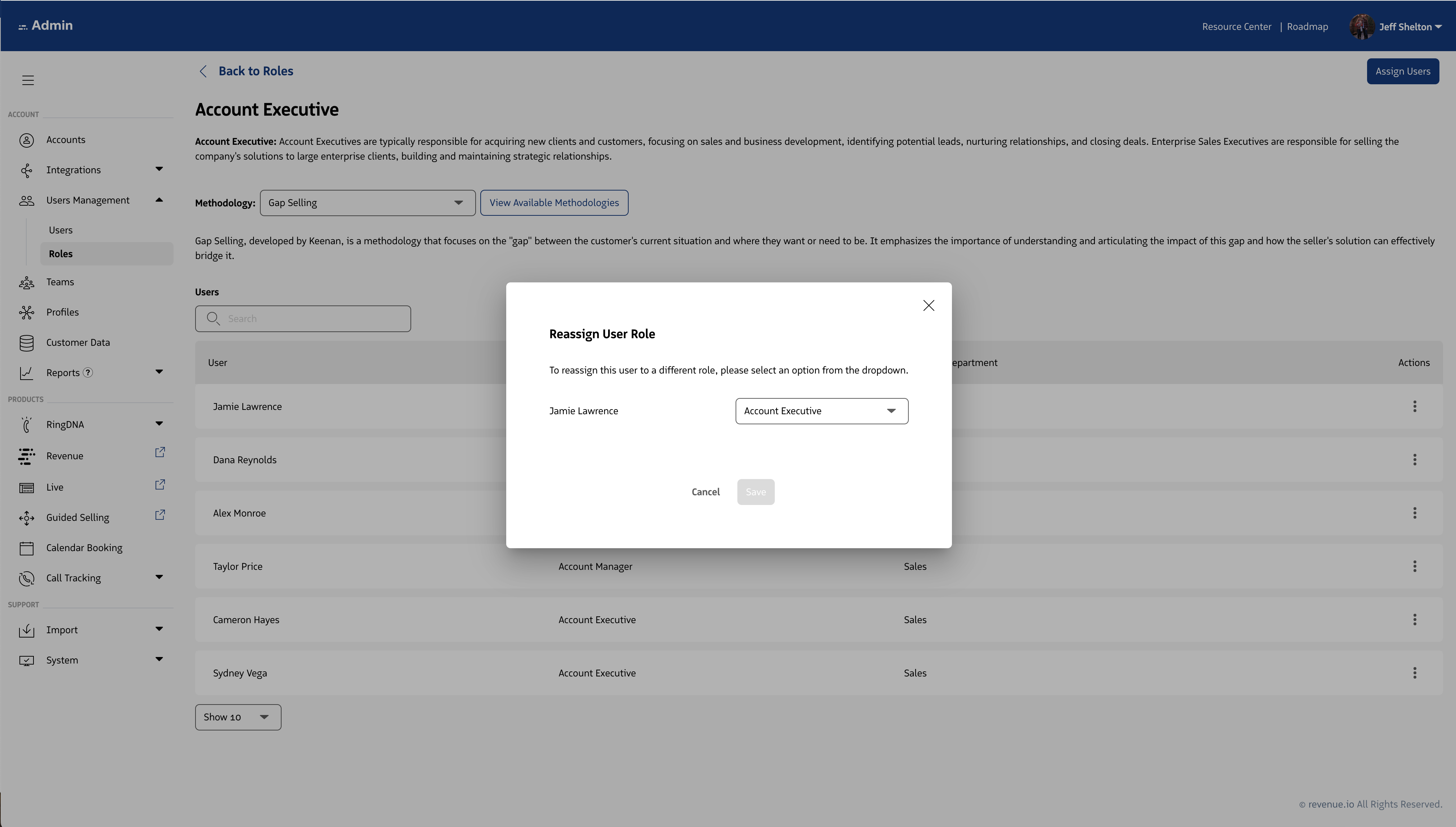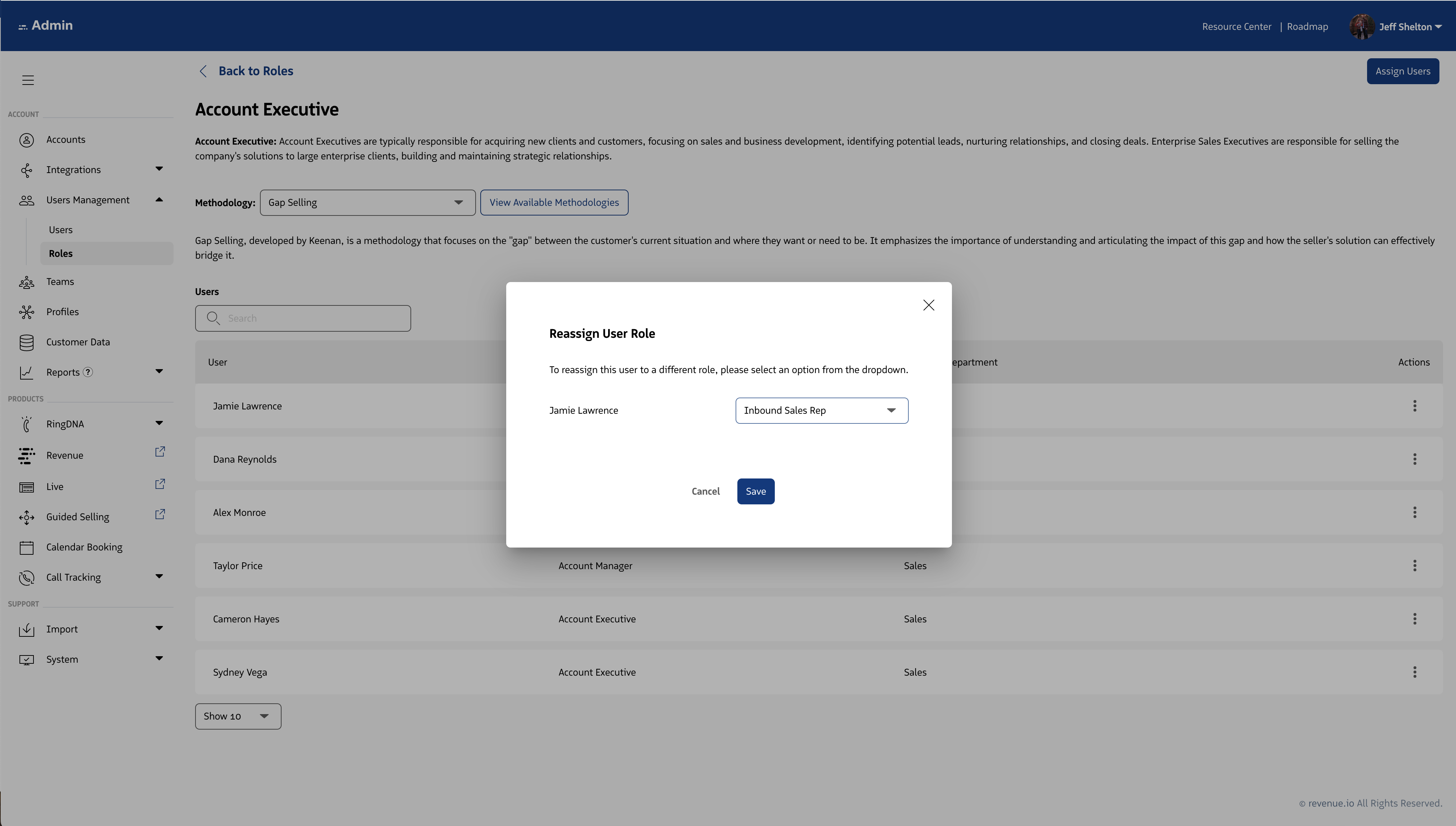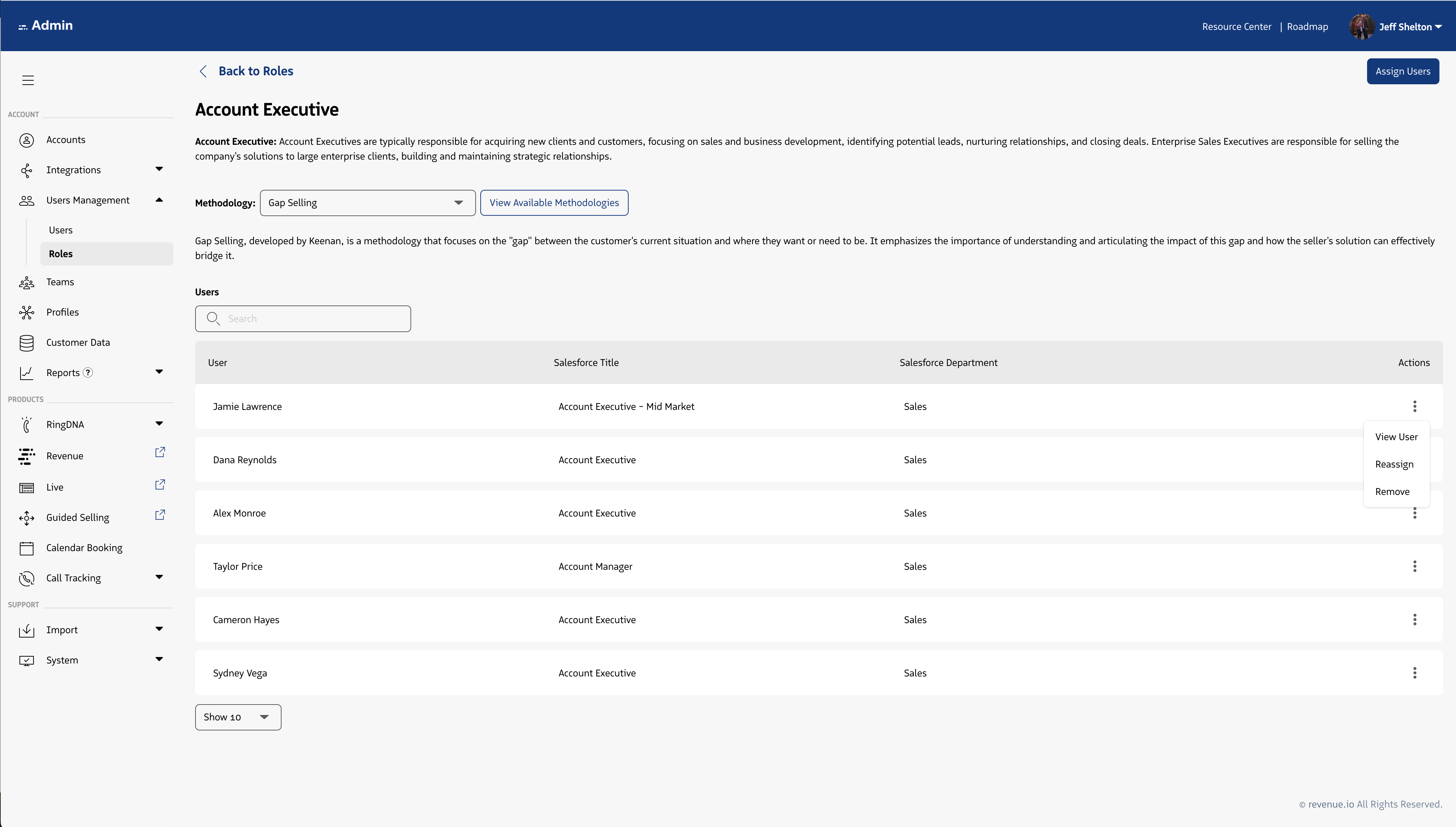 Roles within the Revenue platform, map a user on a 1:1 basis to the best representation of their job function. Roles are used to group users with like responsibilities and success criteria.